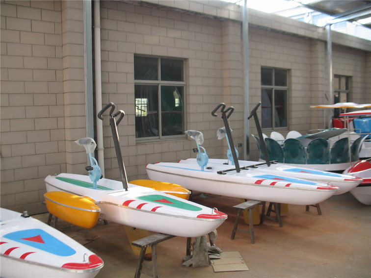 比目前市場上銷售的同類產(chǎn)品的船體型深深,傳動系統(tǒng)方面更先進。簡介:玻璃鋼船體,既輕便強度又高,耐腐蝕,耐老化,表面采用進口玻璃鋼彩色樹脂膠衣,耐水耐老化,色澤鮮艷光潔;改進后的驅(qū)動系統(tǒng)采用蘸火傘形齒輪傳動,速比(3:1)高,人力腳踏省力、速度還大大提高,***健身鍛煉和休閑娛樂性。