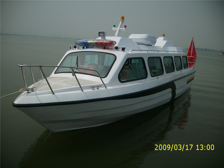 玻璃鋼全棚艇,內(nèi)裝舒適豪華,航行平穩(wěn),可作交通旅游、巡邏執(zhí)法用。