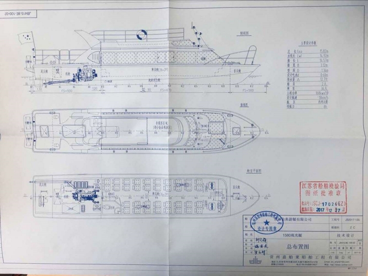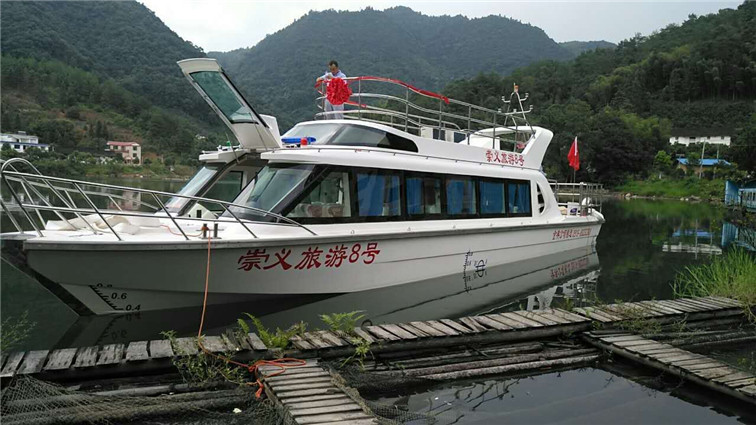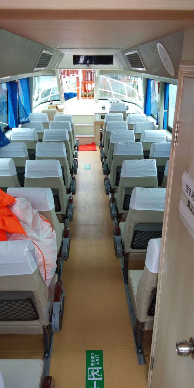 公司自行設(shè)計(jì)開發(fā)的多功能高速客船,單層主甲板,二層觀光甲板,全艇玻璃鋼建造,單體,高速排水型艇型,柴油機(jī)驅(qū)動(dòng),適用于內(nèi)河、湖泊的交通運(yùn)輸,旅游觀光接待,行政巡邏執(zhí)法等任務(wù)。