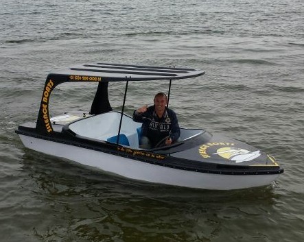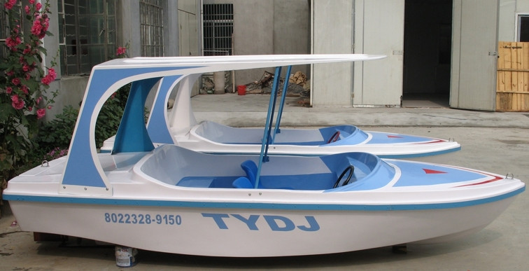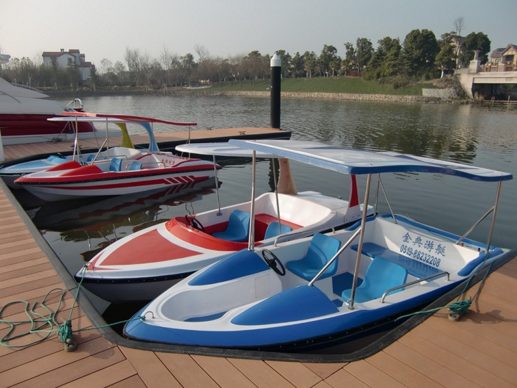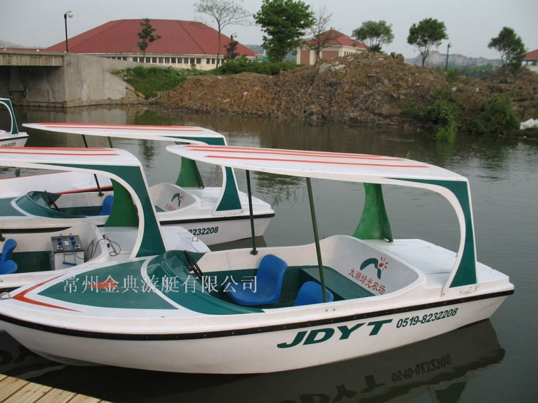 船體材質(zhì)玻璃鋼,具有強(qiáng)度高、重量輕、耐腐蝕、不怕日曬雨淋、色彩艷麗、外型美觀的特點(diǎn)。電瓶驅(qū)動,沒有污染,可由游客自行駕駛??晒┕珗@水域、湖泊、水庫、水上游樂。