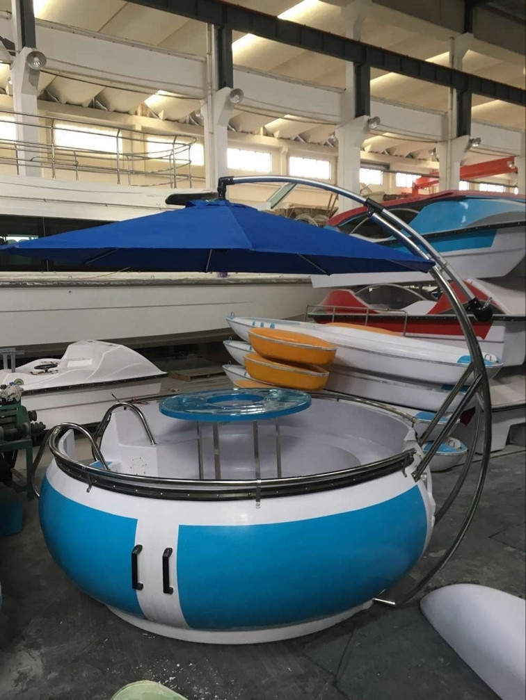 特點(diǎn):圓形燒烤船,***休閑,讓游客體驗(yàn)和一般餐廳完全不一樣的感覺(jué),金屬件均采用不銹鋼材質(zhì)制作,可在上面燒烤,商務(wù)洽談,休閑娛樂(lè)。